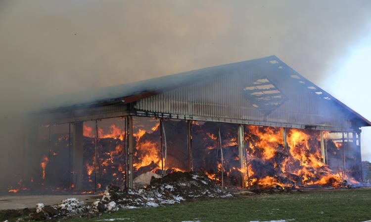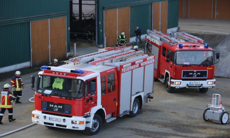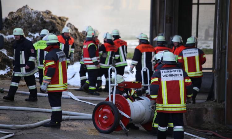 Zu einem Großbrand in Bad Grönenbach wurden mehrere Feuerwehren alarmiert. Eine Futterhalle stand in Brand. Die Feuerwehr Woringen unterstütze bei der Brandbekämpfung und Wasserföderung bis in die Abendstunden.