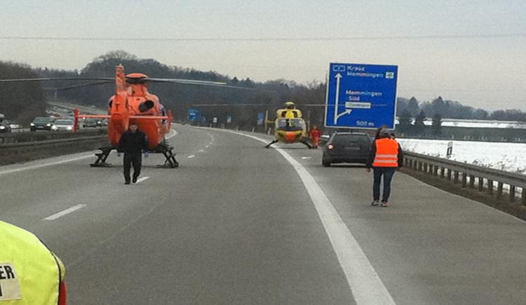 Wir wurden zu einem Verkehrsunfall auf die A7 Fahrtrichtung Ulm gerufen, dort stellten wir den Brandschutz sicher, sicherten die Unfallstelle ab und führten während der Landung zweier Rettungshubschrauber eine Vollsperrung durch. Ausgelaufene Betriebsstoffe wurden mittels Ölbindemittel aufgenommen.