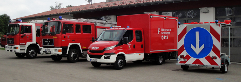 Bis 1980 hatte man in Woringen einen Tragkraftspritzenanhänger und eine Anhängeleiter. Der TSA wurde durch ein Löschgruppenfahrzeug ersetzt. Durch den Autobahndienst kam 1995 das erste LF 16/12 hinzu und 2004 das zweite LF 16/12. Im Jahr 2017 konnte ein neuer Gerätewagen Logistik 1 indienst gestellt werden. Das Tragkraftspritzenfahrzeug wurde ausgemustert und konnte mit den Feunden Bomberos aus Eisenburg nach Paraguay/Südamerika überführt werden. Dort wird es in Asunción seinen Feuerwehrdienst weiter versehen.